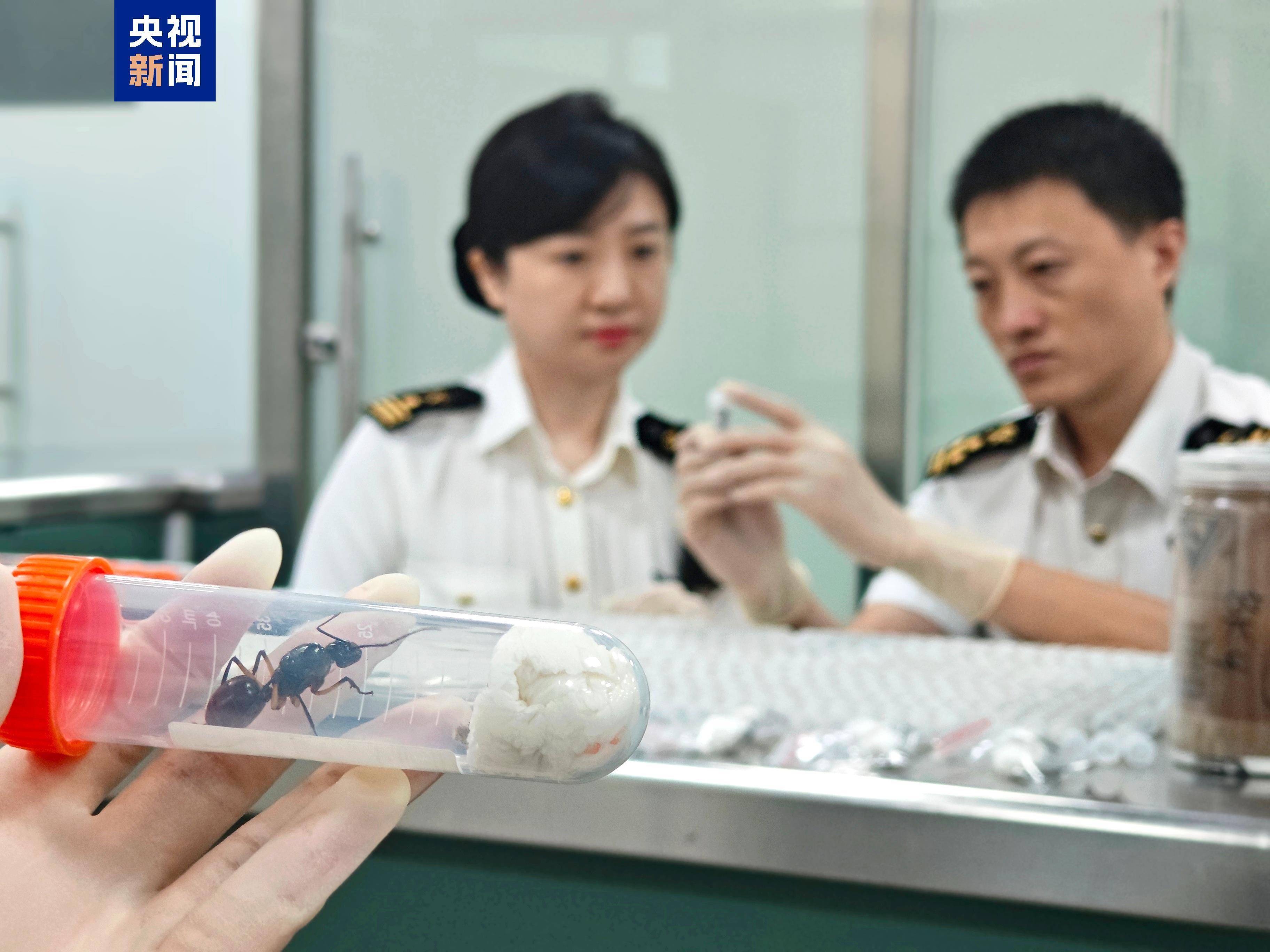 经专业机构鉴定,该批活体昆虫中有巨人恐蚁779只、华丽金螳28只,上述两种物种在我国没有天然分布,均属外来物种。